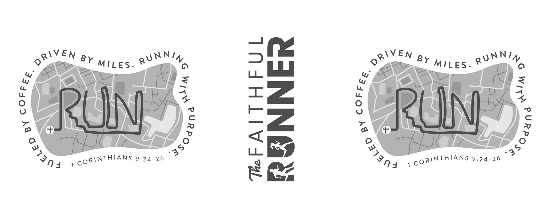 This sturdy white ceramic mug features a unique GPS artwork of an actual running route shaped into the word “RUN,” inspired by 1 Corinthians 9:24-26. The words “Fueled by coffee. Driven by miles. Running with purpose” line the artwork to give you a small pep talk each day to get after the day.